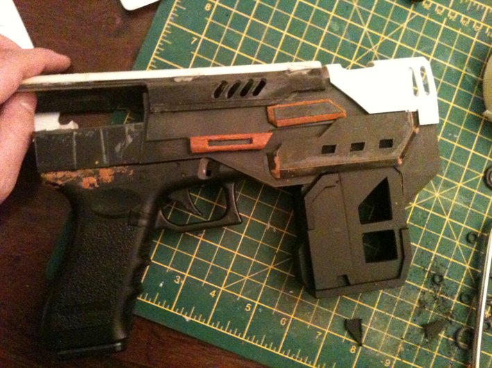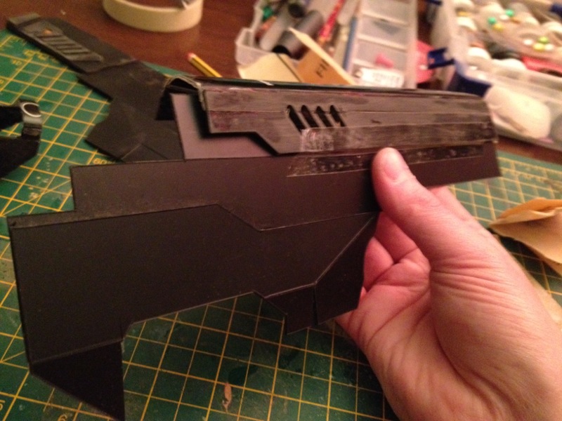 But after discovering more images of the gun, particularly screencaps from some of the trailers and behind the scenes vids I refined the design quite considerably...